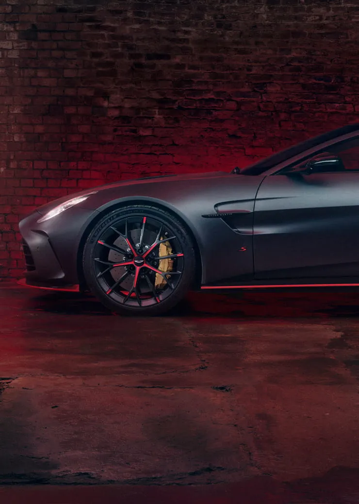 Vantage S builds on what was already the most emphatic leap in power in over 70 years of the iconic Vantage marque. Unleashing the full potential of the hand-built twin-turbo 4.0-litre V8 to achieve a total power output of 680PS*. And a staggering 800Nm of torque. As visceral as it is vocal. Securing its class-leading positioning with the highest output of any front-engined rear-wheel drive sports cars using purely an internal combustion engine. THE HEART OF VANTAGE - A 4.0-litre twin turbo V8 engine, hand-built in lightweight aluminium, is the beating heart of Vantage S. 32 valves. A closed-deck block to boost strength and rigidity. Eradicating unnecessary weight. The Hot ‘V’ configuration creates a compact engine package. Utilising close-coupled, high flow, twin-scroll turbos. Topped with zirconium alloy cylinder heads.